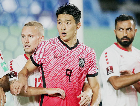 신체적 능력과 스트라이커의 능력이 한창 물오를 시점에 조규성은 2021년 8월 첫 국가대표 명단에 선발이 되었고 9월 7일 레바논과의 아시아 최종예선에서 선발 출전하며 A매치 데뷔전을 치렀습니다. 데뷔전에서 준수한 활약을 펼치고 후반전 시작과 동시에 황의조와 교체되었습니다.