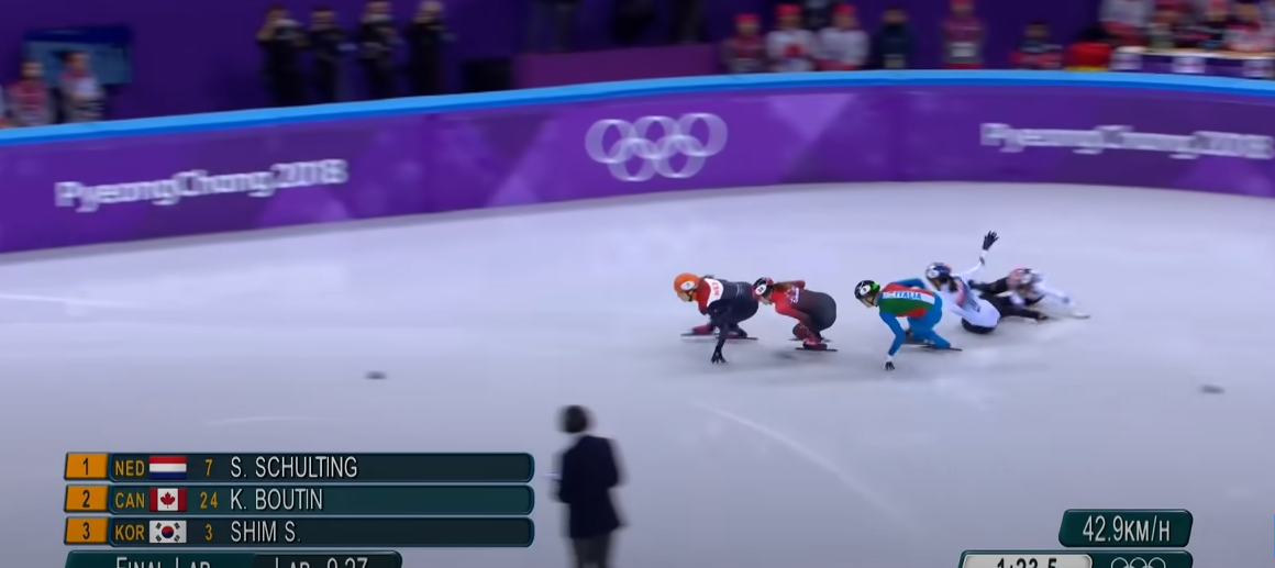1000m 결승에서는 최근 논란이 많았던 심석희와 충돌이 있었던 경기입니다. 심석희가 고의로 최민정을 추월하지 못하게 막아서면서 같이 넘어졌다고 알려졌던 가운데 당시 결과는 심석희 실격, 최민정 최종 4위로 누구도 메달을 획득하지 못하였습니다.